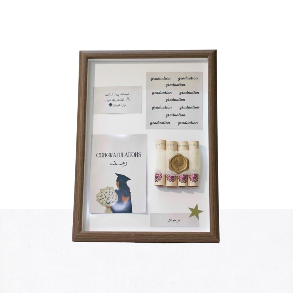 إطار خشبي مقاس A4 أنيق ومميز، مثالي لتقديم المبالغ النقدية كهدية لمناسبة الزواج.
